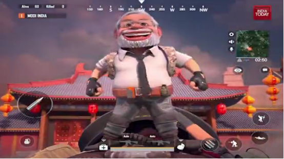《今日印度》上周发了一个卡通视频,表现莫迪手持双枪闯进中国古建筑群,开火击毙微信、TikTok等中国APP,那些APP都是平民装扮,手无寸铁,莫迪大开杀戮。最后只有“绝地求生”手游持枪抵抗,但其也未逃脱被莫迪击毙的命运。