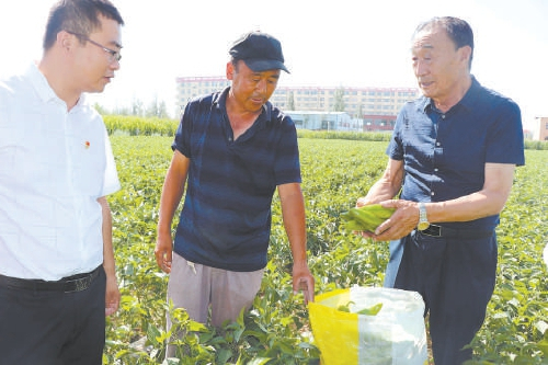 石光银(右一)向十里沙村的贫困户了解辣椒收成情况。
