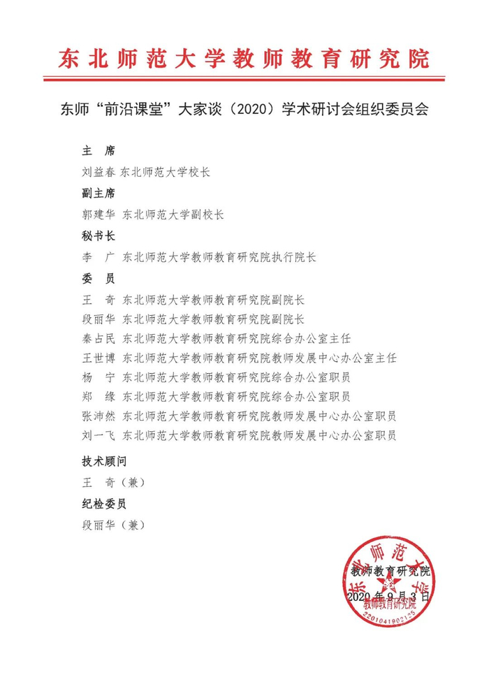 1. 现场会议:东北师范大学本部校区综合教学楼教师教育研究院205教室。