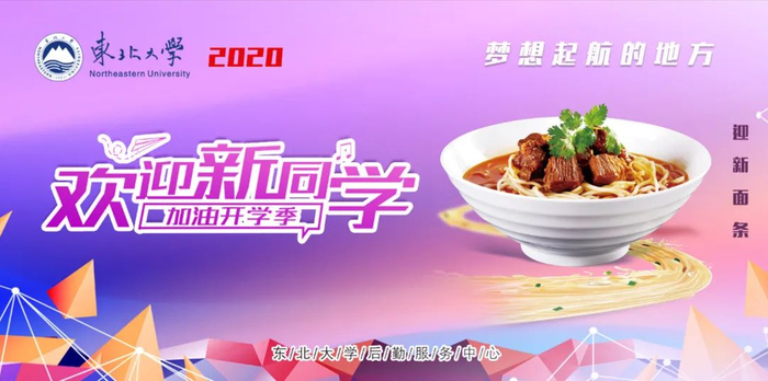 小福利:为欢迎2020级新生入校,学校在开学季举行“下车面迎新生”主题活动。入学后一个月内,各校区新生均可凭券在食堂面条窗口免费领取“迎新面条”一碗。