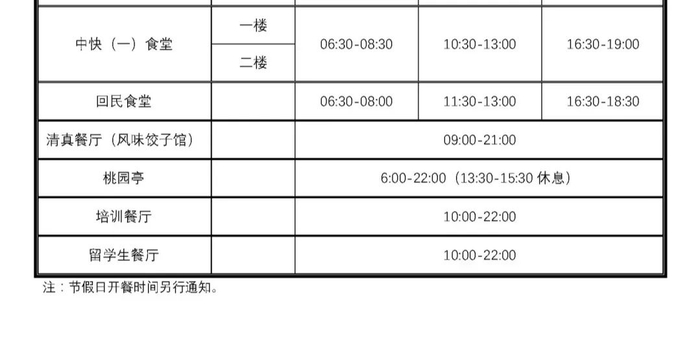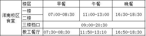 浑南校区食堂开餐时间: