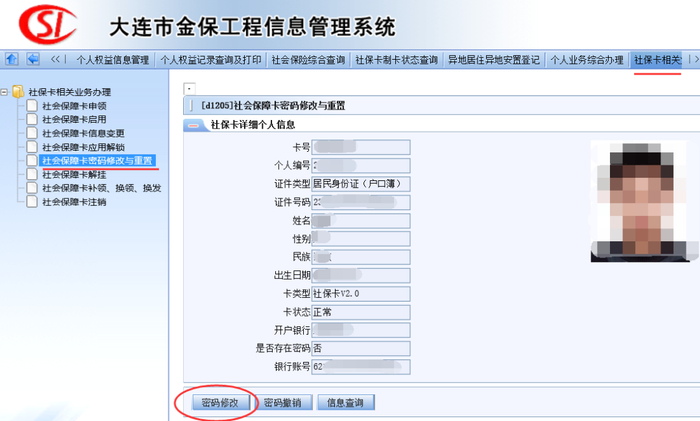激活完成后,点击“社会保障卡密码修改与重置” → “查询”→ “修改密码”,设置医保功能密码,社保卡医保功能激活完成。
