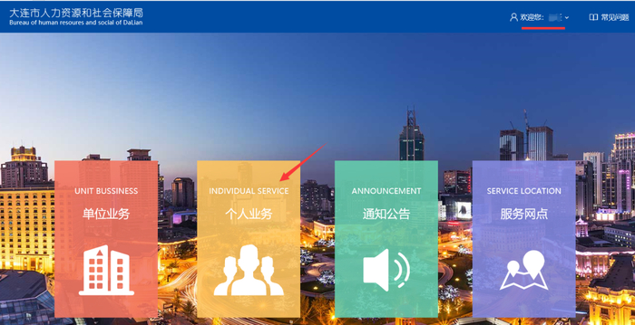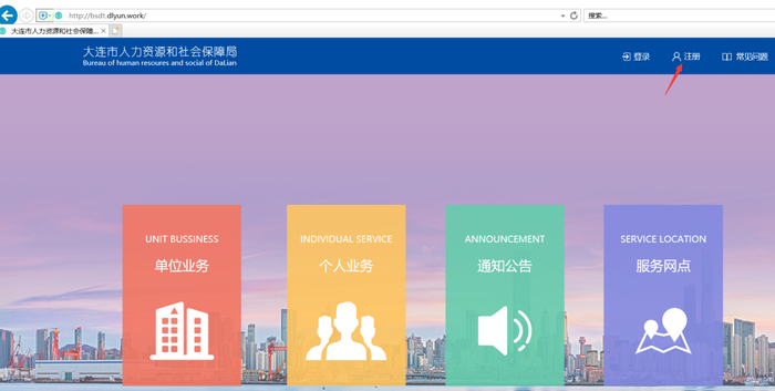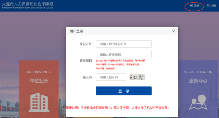 “登录”大连市人力资源和社会保障局网上办事大厅。