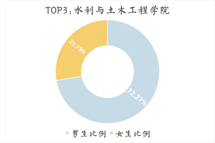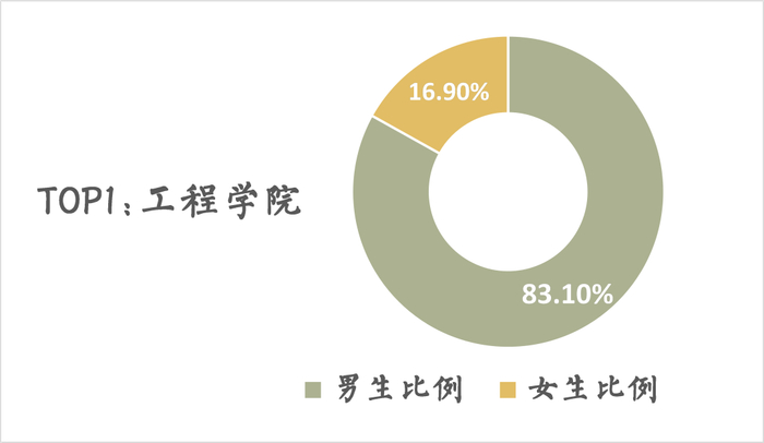 男生占比最多的前三甲学院分别是:工程学院,电子工程学院、人工智能学院和水利与土木工程学院。