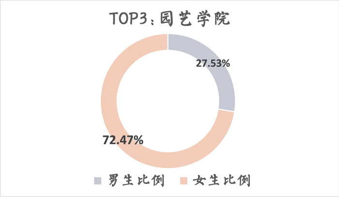 女生占比最多的前三甲学院分别是:外国语学院、人文与法学学院和园艺学院。