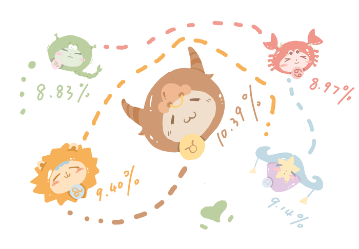 占据星座排行榜Top5的分别是:金牛座、狮子座、天秤座、巨蟹座和天蝎座。金牛座的朴实能干正是华农er共有的优点呢!你们是什么星座呢~