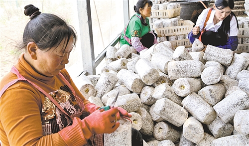 会泽县贫困户易思芬在会泽道成扶贫开发公司种植蘑菇,月收入3000多元。(资料照片)