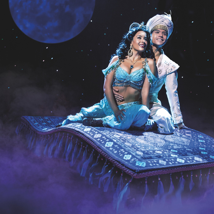 音乐剧《阿拉丁》于2014年3月20日在百老汇的新阿姆斯特丹剧院首演,在2014年托尼奖上曾获得过包括最佳音乐剧、最佳原创配乐和最佳舞蹈在内的五项提名。2016年6月伦敦西区版《阿拉丁》在爱德华王子剧院(The Prince Edward Theatre)开幕,持续演出三年。此次上映的版本是Disney+2019年在伦敦西区爱德华王子剧院拍摄的一场特别版现场演出,此版演员阵容汇集了《阿拉丁》不同制作的全明星阵容,包括百老汇、伦敦西区,以及巡演版演员。Disney+确认了2020年12月此版将在Disney+上首映。