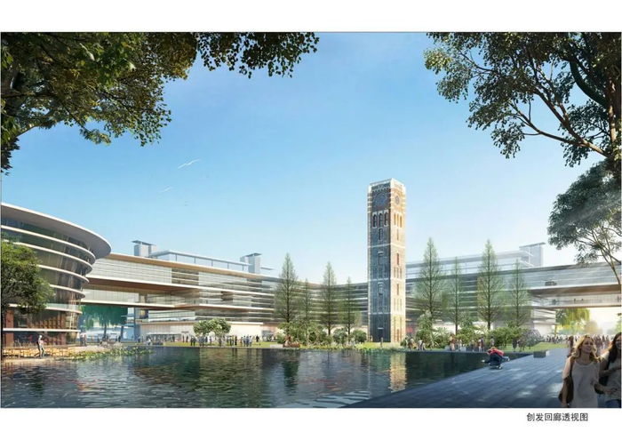 苏州大学未来校区围绕“未来”主题构思规划设计,本着打造最能激发创造力空间为目的,将苏州的风土人情即苏大文化的历史传承融入其中,突出“绿化・苏河・人”三个要素,通过绿化布置,将北侧胜地公园引入校区,打通两者之间的绿色廊道,营造公园中的校园。主楼中央的集中式共享空间,使校园中心形成一个磁极,为跨专业人群提供了交流分享的场所。同时散落在周围的村落式宿舍,也为校区营造了与众不同的生活空间。