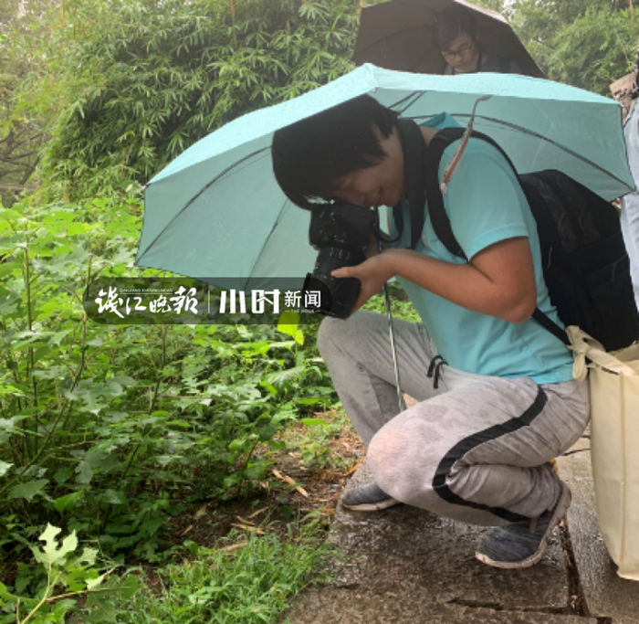 陈川说,植物园从7月28日开始第一次调查,每次小组成员们一来就是一整天,大约一天能观察到100多种植物。举着雨伞,为了看到河边植物,陈川和同事们要穿过茂密的草丛走向更深处,蹲下身来判别植物的种类。