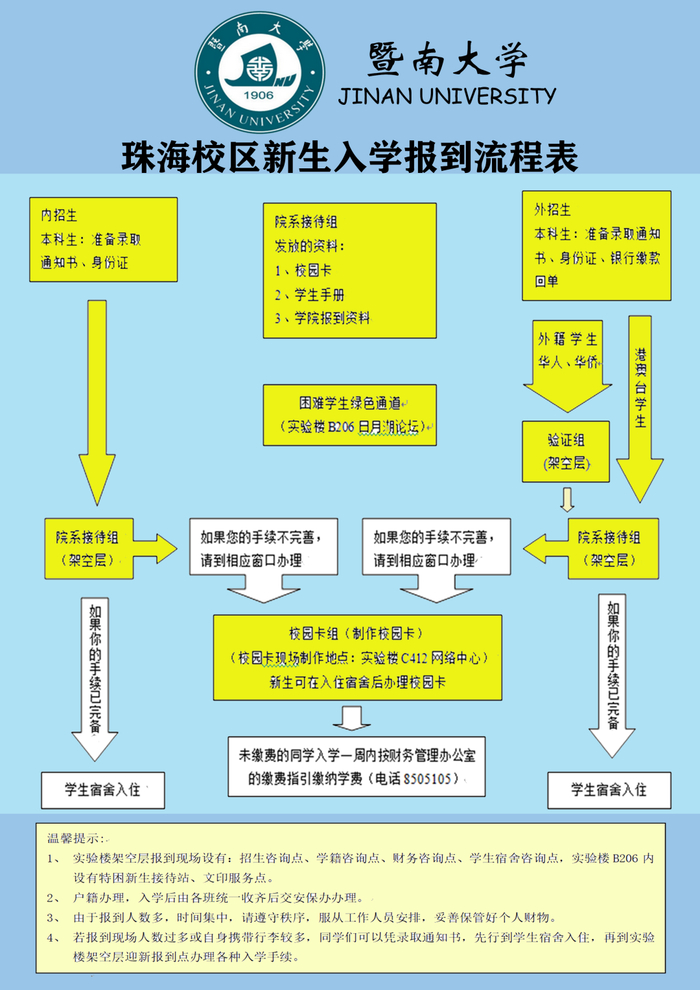 (珠海校区新生报到流程图)