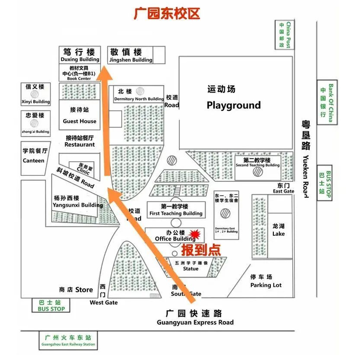 (广园东校区报到点及行程路线图)
