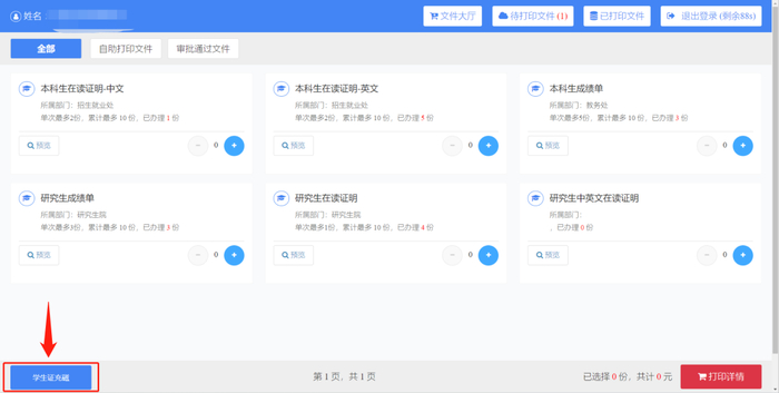 · 注意证明材料单次打印和总打印份数限制