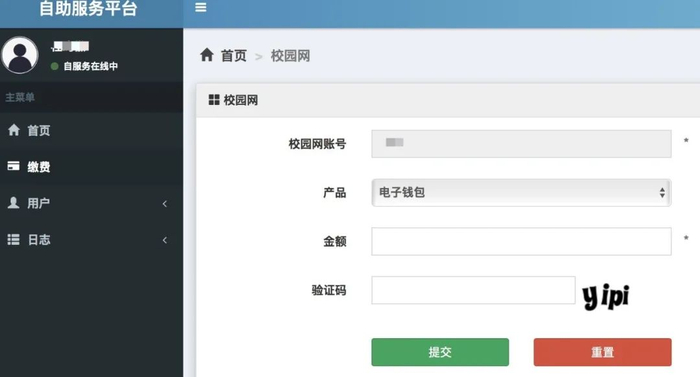 网页端:自服务平台——“缴费”给电子钱包充值,然后选择"用户”——购买套餐