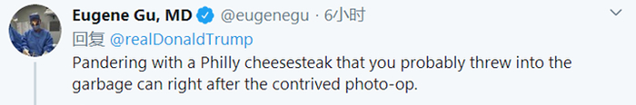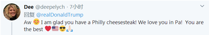 有当地民众表示:“很高兴看到你享用费城芝士牛排!我们喜欢你来费城!你是最棒的。”