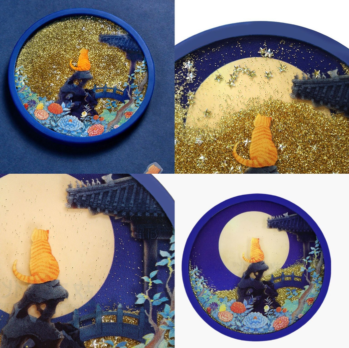 当故宫猫遇上紫禁城里的金漆点翠玻璃屏风,两个元素幻化出这个精致的杯垫。御花园中,一轮满月,故宫猫蹲坐太湖石。杯垫里填充的金色流沙与银色星星,犹如夜空中洒下的月光。杯垫有防滑减震设计,隔热防烫。用这样的杯垫,品茶、赏月,心中的惬意就不必说了。