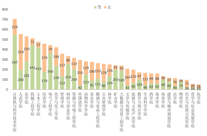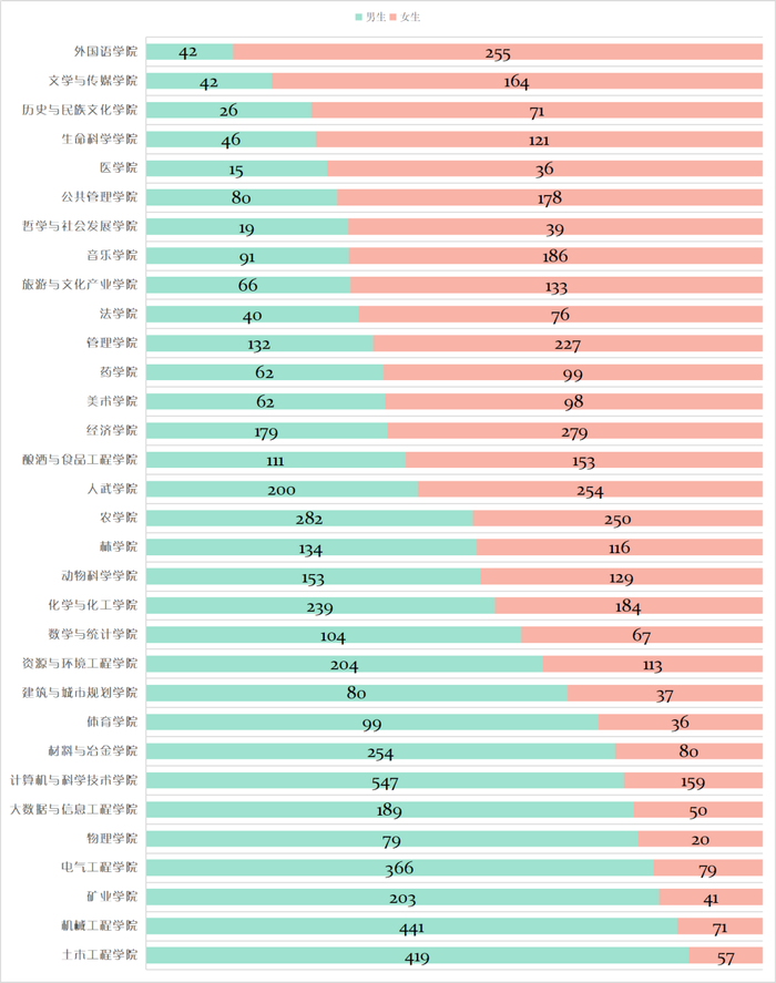恭喜土木工程学院喜提最高男女比,每8个新生中仅有1个女生。