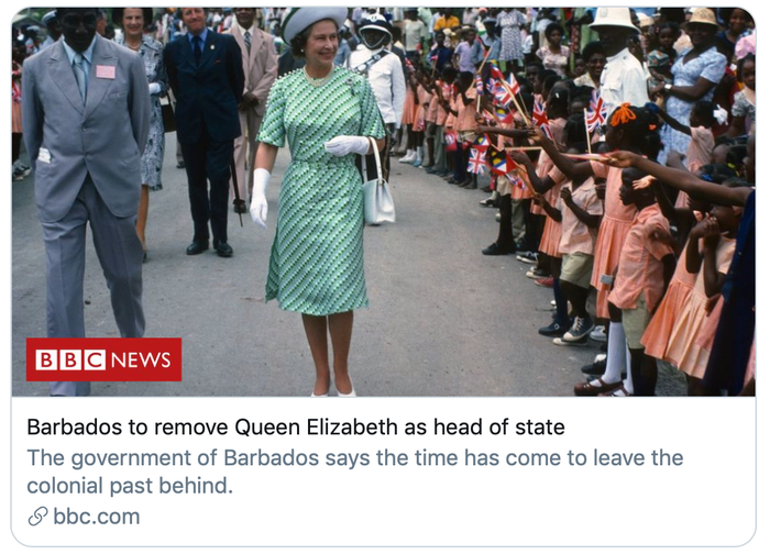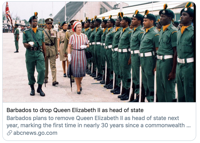巴巴多斯此前是英国殖民地,1966年11月30日宣告独立,成为英联邦成员国,国家元首则是英国女王。BBC指出,巴巴多斯是近30年来,首个宣布不再承认英国女王国家元首地位的国家。