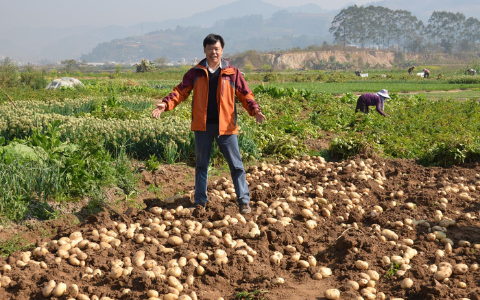 2018年,朱有勇在冬季马铃薯培训班学员的地里查看收获情况。受访者供图