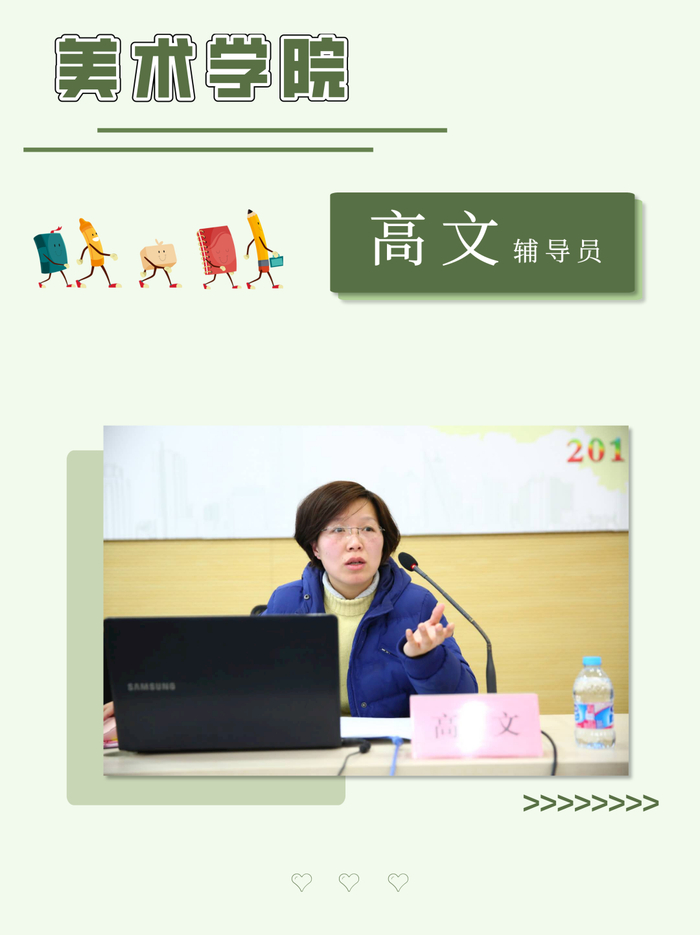 高文,现任学院学工办主任、心理辅导员,毕业于上海师范大学对外汉语学院语言学及应用语言学专业。曾获上海市大学生暑期社会实践活动优秀指导教师、上海市高校辅导员论坛优秀论文奖、上海师范大学“十佳辅导员”等荣誉。