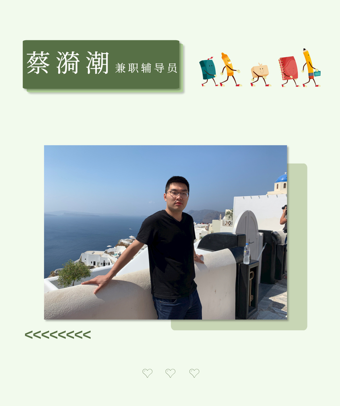 蔡漪潮,毕业于英国谢菲尔德大学。曾任上海师范大学商学院第五届团委学生会主席。曾获上海师范大学优秀大学生党支部书记、优秀团干部标兵等荣誉。