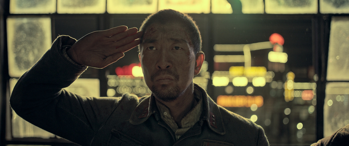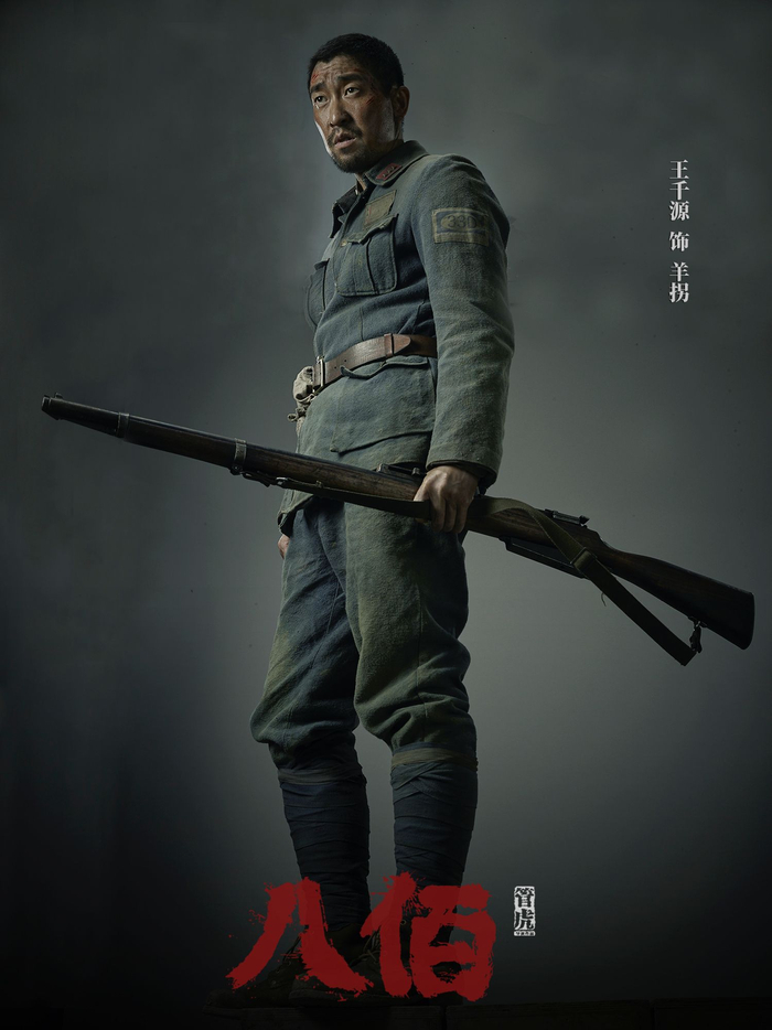 《八佰》的主打海报是“羊拐”扛着大旗的背影,这让王千源觉得自己很幸运,“正因为它是背影,如果是正面就代表了一个人物,但背面则代表了一种力量、一个群体,这样的呈现很有力量。每次我在大街上看到这张剧照就觉得很催泪,也觉得非常幸运。”