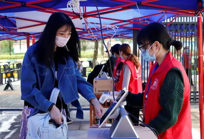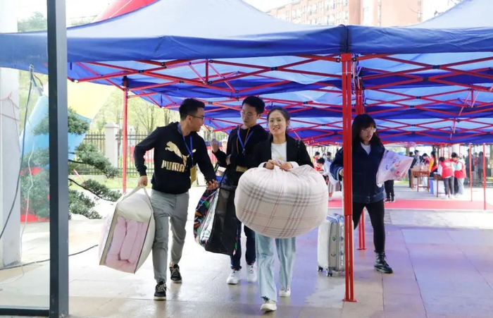 在校门口,学校为同学们平安返校做了充分准备和悉心安排,同学们经过扫描核验健康码、测温、身份验证、消杀等流程后进入校园;各学院分设报到点,工作人员有序地做好新生入学疫情防控登记、资格审查、收取疫情防控承诺书等工作,引导学生顺利完成入学报到各流程;志愿者的身影遍布在校园各个角落,热情地为新生搬运行李,引领指路。报到现场井然有序,工作人员耐心细致。