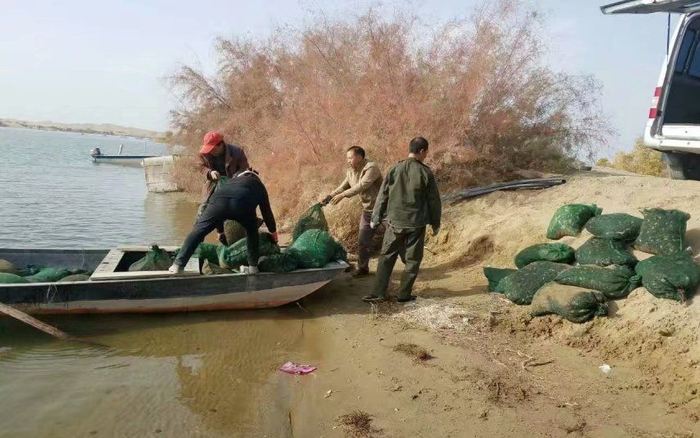 据了解,罗布湖水域原本面积很小,难称湖泊。对于地处塔里木河流域中下游的尉犁县来说,这片水域是河流上游生态输水后逐渐形成。加上生态输水带来的水生物资源,罗布湖才具备了基本的淡水养殖条件。