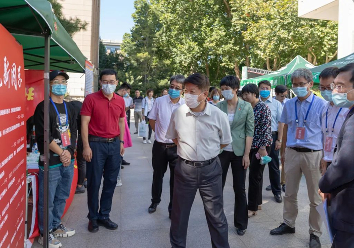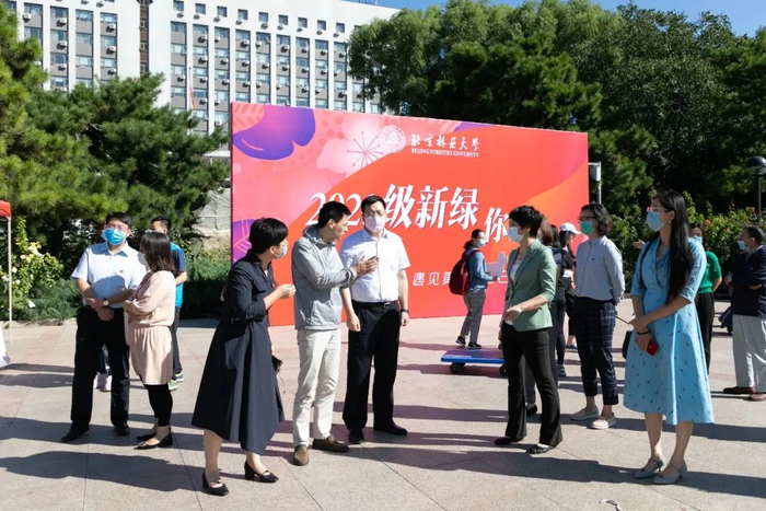 9月17日,北京林业大学2020级新生报到的第一天。校党委书记王洪元,校长安黎哲,校党委副书记谢学文,校党委副书记、纪委书记王涛,校党委副书记孙信丽,副校长骆有庆以及相关职能部门负责人等来到迎新现场,检查迎新工作,看望前来报到的新生,并慰问参加迎新工作的师生员工。
