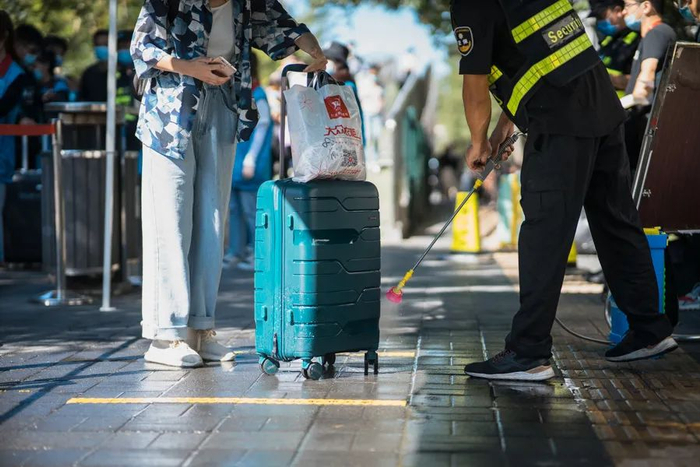 出示健康码 行李消杀 体温监测