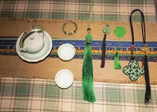 以涪陵榨菜原材料青菜头为创意元素,采用“莲花结”“圆满圈”等结绳工艺,纯手工制作而成,以“菜头”与“彩头”谐音双关,寓意好运吉祥。