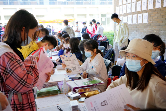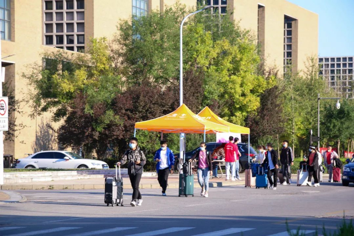 今年的新生报到工作,学校仍然提供“一站式”服务。各学院、各相关职能部门在励志广场开展联合办公,全天候做好迎新工作。