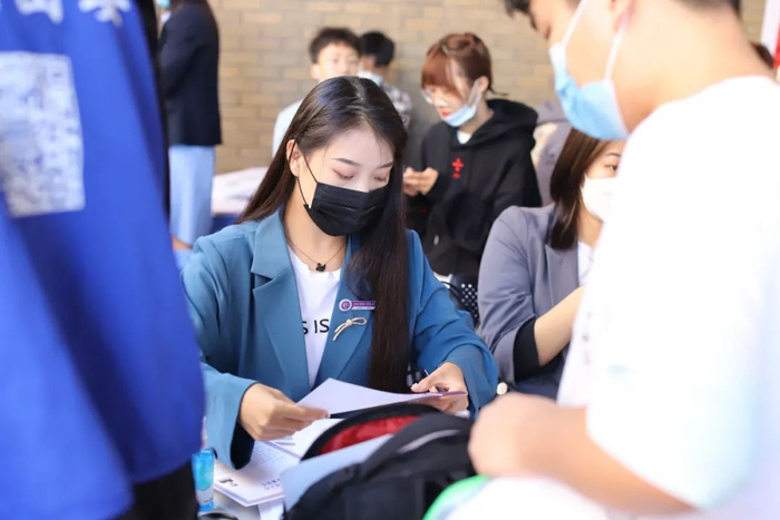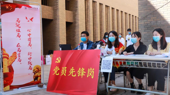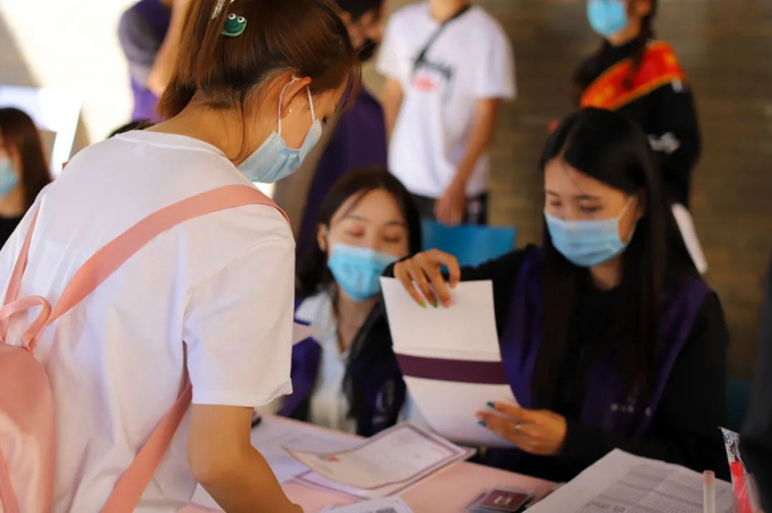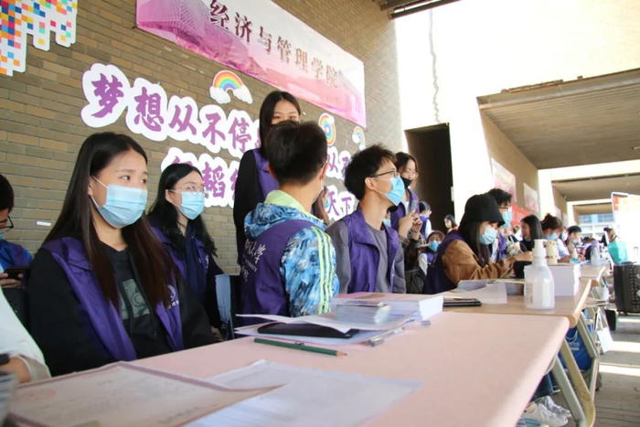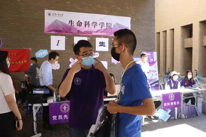 生命科学学院对新生开展“四史”学习教育和光盘行动宣传。数学科学学院、艺术学院师生党员一对一迎接新生,帮助新生搬运行李,为家长答疑,提供暖心服务,全程陪伴,让家长放心、学生安心。物理科学与技术学院“蓝蝶”志愿服务队为迎接新生的到来保驾护航;学院公众号“决胜千理”团队为新同学们拍照和录制报到瞬间,为他们留下青春最美好的瞬间。人文学院在迎新现场贴心地为每位新生准备了一包口罩,提醒他们注意防护的同时也彰显了学院的人文关怀。