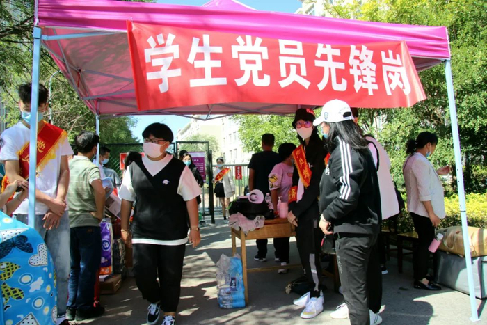 师生党员和志愿者们忙碌于各个重要点位,耐心真诚地提供引导和咨询服务。各学院在公寓和励志广场纷纷设置学生党员迎新服务点、学生党员示范岗,帮助新生办理入学手续、信息采集和搬运行李等各项工作,并为新生发放党员联系卡,方便新生及时获得帮助。师生党员们活跃在各个迎新工作点,以饱满的激情投入到迎新工作之中,让新生们初来天工就感受到大家庭的温暖。