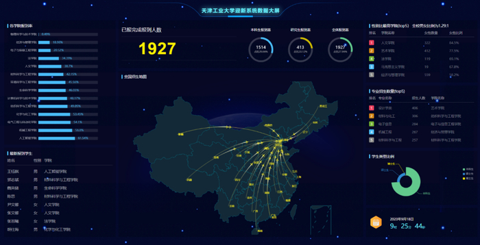 网信办为迎新现场做好无线网络基础保障工作,实现了工作人员提前线上采集学生基础数据、照片、健康数据,学生提前申请绿色通道、查看宿舍,优化了迎新工作流程,完成免接触、线上报到。迎新管理端实时显示报到数据,为学校智能化、可视化管理提供可靠依据。
