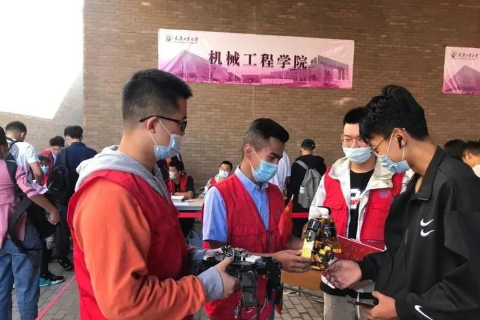 机械工程学院、电气工程与自动化学院、人工智能学院等学院设立“实验室作品展区”,展示多种型号机器人和无人机,直观展示学院创新实践科技成果,为新生开启科技创新之路。