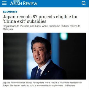毕竟,3月5日,退出撤离补贴政策一个月前,还在首相位上的安倍就曾明确指示,要求日本企业将部分产业链从中国撤回日本或转移至东南亚,“以减少对中国的依赖”。