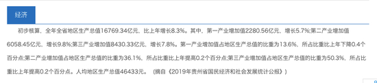 贵州官方数据显示,经初步核算,2019年全年全省地区生产总值16769.34亿元,比上年增长8.3%。