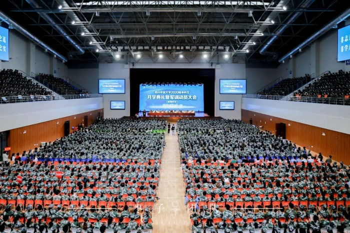 9月19日上午9时,学校分别在成都校区科创中心、雅安校区体育馆、都江堰室内运动馆隆重举行2020级本科生开学典礼暨军训动员大会。