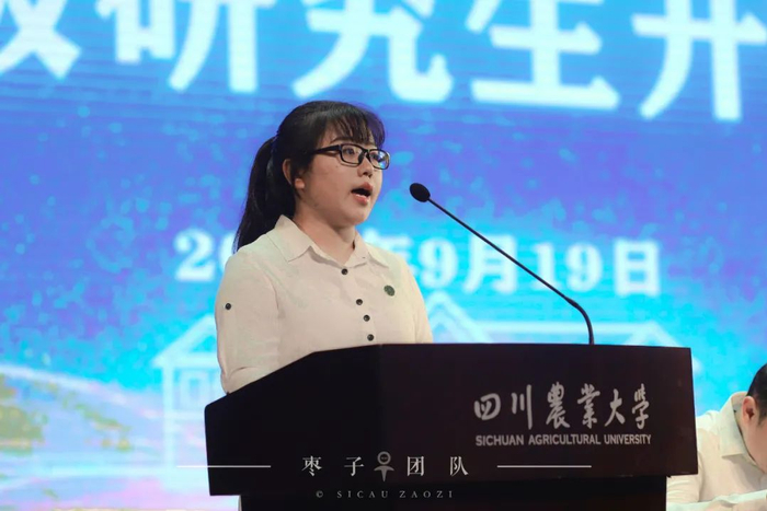 理学院生物资源化学专业研究生李可欣同学、农学院农业昆虫与害虫防治专业硕士研究生陈淋同学、旅游学院旅游管理专业新生阳琴同学作为新生代表发言。