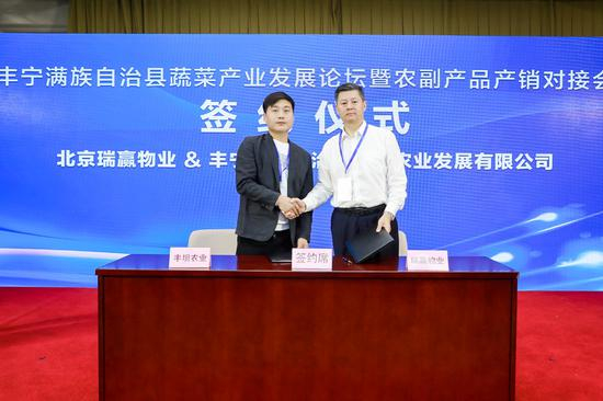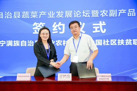 会上,丰宁满族自治县农业农村局与中国社区扶贫联盟进行了“社区的力量”结对计划签约;北京瑞赢物业、北京网信物业、北京首华物业与丰坝农业进行了“我家菜园”蔬菜基地认购签约仪式。