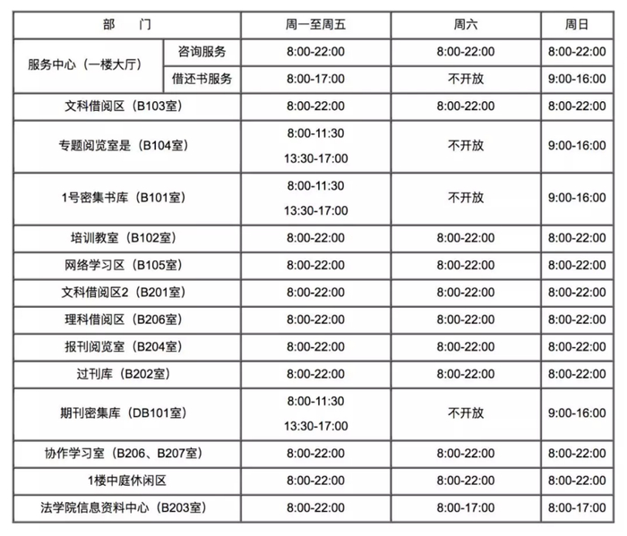 开放时间:11楼周一至周五8:00-21:30,周六9:00-17:00;12楼周一至周五8:00-17:00
