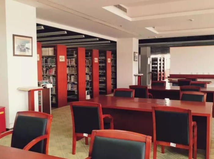 环境设施:藏书以中文系专业书籍为主但不外借,内有四人桌可用于自习。