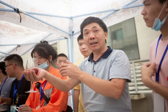 “品味传统桂浆文化,探寻生工学科之美”活动旨在以一堂别开生面的“品酒课”引领新生体味传统酒文化,学习品酒礼仪,感悟学科魅力,开启大学美好生活。“学校里酿的啤酒里,麦子的香味很浓郁,很好喝!我从来没想过可以在大学学习品酒,这种体验很新奇。”生物科学2006班的王源清同学端着“华农嫩啤”赞叹道。活动负责人、生科院辅导员梅斌表示:发酵是生物工程专业的未来发展趋势,而酒文化也是中华文化源远流长的象征之一,因此“希望通过这样一个体验活动,让新生提前感受专业的学习方向,感悟学科魅力。”(李靖威 摄)