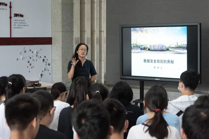 不同往年讲解学科专业的模式,理学院主题为“英国的海岸线有多长”的信息与计算科学学科文化体验活动将学科体验、学科介绍以及学术前沿展望合三为一,为新生们呈上了一场丰盛的“学科盛宴”。陈金老师透过一幅幅“大自然的几何”图案为新生们讲解分形几何,通过与同学们体验“英国的海岸线有多长”来感受数学与科技的融合动态美。“人工智能是什么?”“人工智能和数学又有什么联系?”“信息与计算科学专业和计算机又有怎样的关联?”理学院副教授沈婧芳带着这三个问题给同学们带来了当下讨论最多的人工智能相关话题。(田益铭 摄)