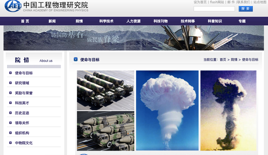 据官网介绍,中物院的使命和目标是,推动国防尖端武器及其科学技术持续发展,确保我国战略威慑力量始终安全、可靠、有效。