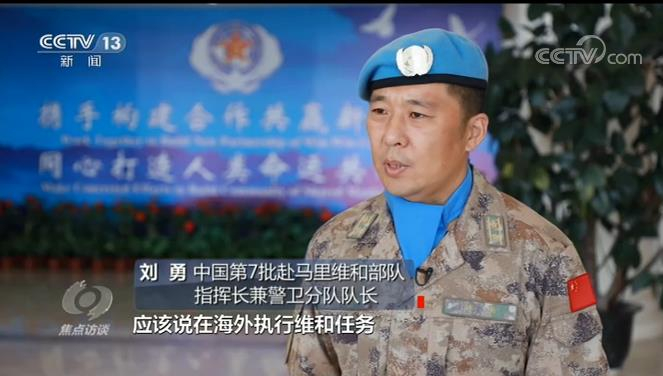中国第7批赴马里维和部队指挥长兼警卫分队队长 刘勇:在海外执行维和任务条件非常艰苦,有维和官兵思亲想家之苦,也有面对恶劣自然环境的艰苦,同时还承担着一些巨大的风险,比如说可能会遭受恐怖分子的攻击。