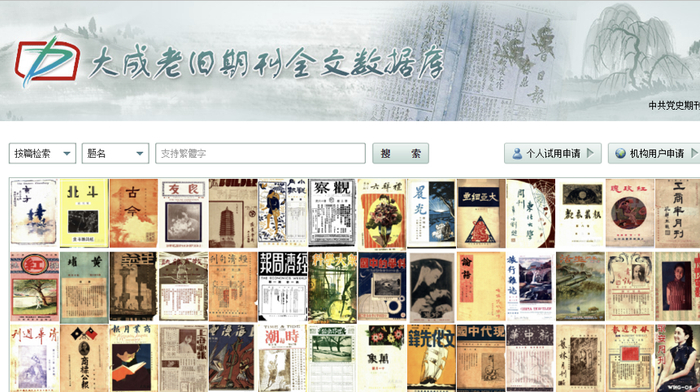 近代史研究重要的数据库“大成老旧期刊全文数据库”,目前已收藏数字化期刊7000多种,14万多期。目前可以在许多高校校内登陆检索。但对个人用户来说,价格仍相当昂贵。在买不起这套数据库的个人用户当中,小编即是其中之一。