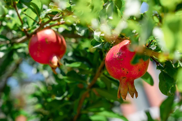 中心岛水系两侧有石榴、桃树、苹果、山楂等树木。