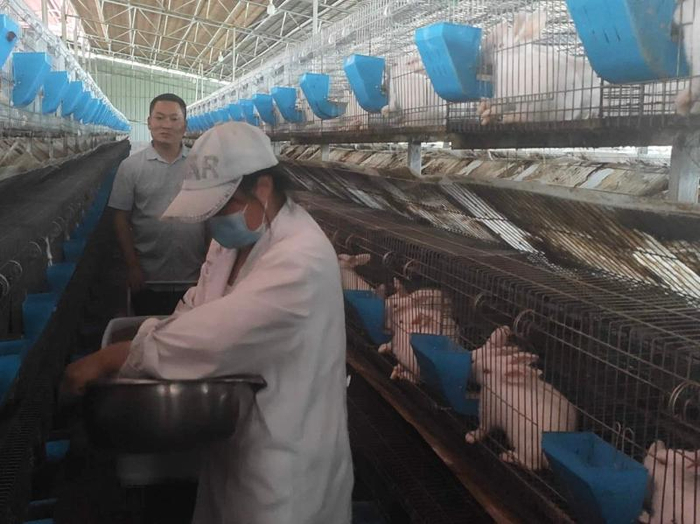 建筑工人王开荣2019年投资修建了一个肉兔养殖场,开展规模化肉兔养殖。但苦于当地没有合适的兔料,所需饲料均从四川、河南、山东等地购买。由于距离远,养殖服务跟不上,兔群死亡率居高不下。纳雍新希望源生农业有限公司得知情况后,数次派出技术人员现场指导,从环境改善、饲养方案、兔群保健方面开展综合服务,使得问题得以解决。